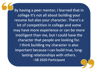 In 2020, we provided an enriching and meaningful experience to 80 participants. Below are outcomes based on the SB student survey:
