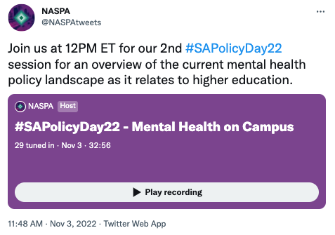 - Mallory Jordan, Senior Director of Health and Well-being Initiatives, NASPA, @NASPAMal