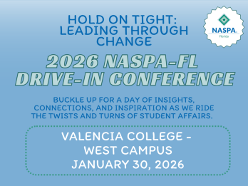 I am looking forward to working with NASPA-FL Board to create engaging professional development experiences as well as design meaningful connection opportunities to serve our members in the State of Florida. Our team is excited about the opportunity to continue to grow our annual NASPA-FL Drive-In Conference and we are looking forward to seeing you on January 29-30, 2026 at Valencia College - West Campus.